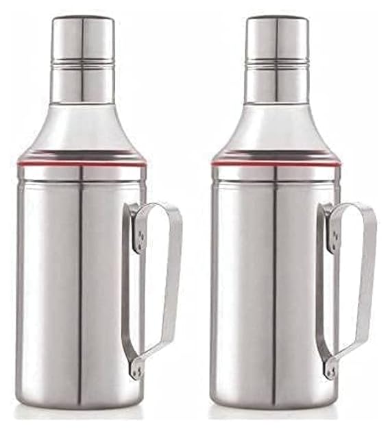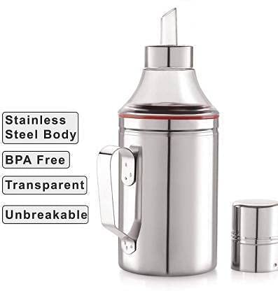 Stainless Steel Oil dispenser 1 with Handle and Pourer with Measurement, Transparent Jug With Handle and Lid, Leakproof, Spill Proof, Transparent neck ,Big Mouth To Easy Refill and store.