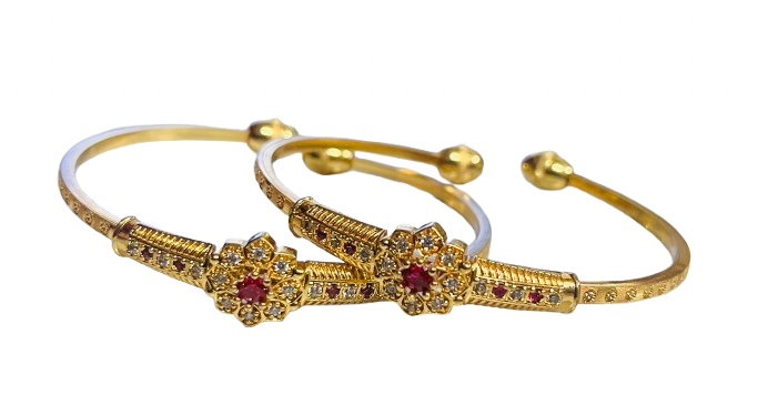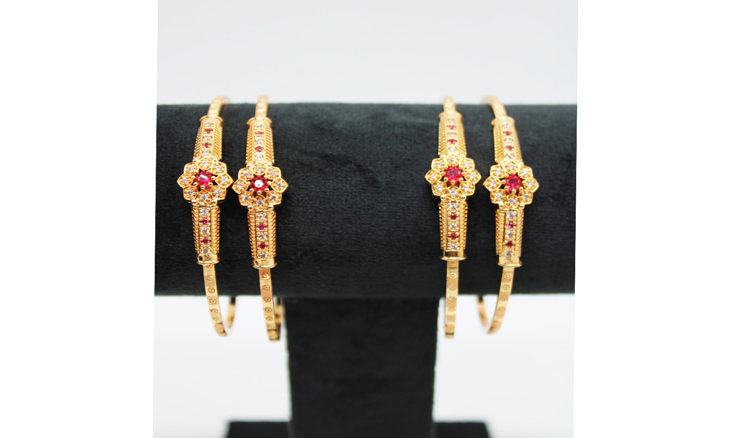Set of two gold plated bracelet bangles for women .These bangles offer the luxury look of gold at an affordable price point. They are made from a base metal coated with a thin layer of gold, providing a durable finish. Gold Plated Bangles are perfect for special occasions and can be paired with traditional or modern outfits.