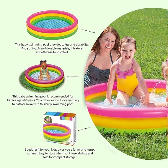 Featuring a colourful rainbow pattern, this inflatable baby pool adds fun and excitement to outdoor water play, making it a delightful choice for kids and toddlers.