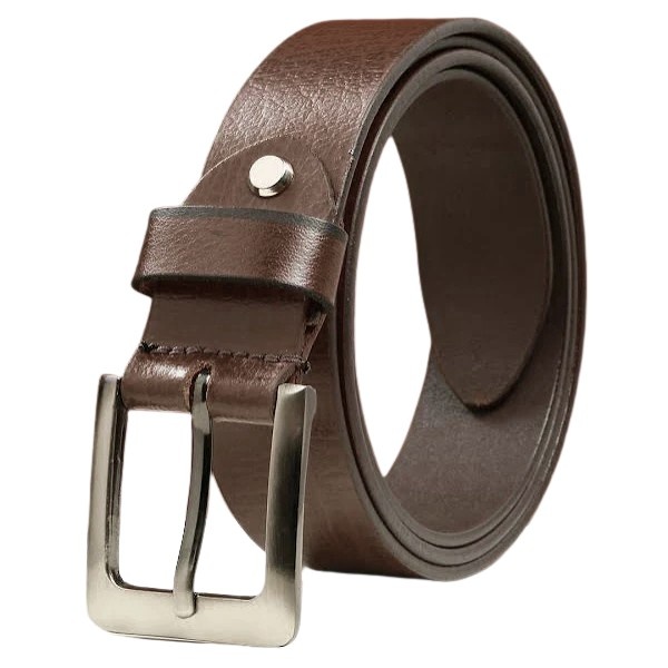 Classic Brown Leather Belt with Silver Buckle Made from high-quality genuine leather