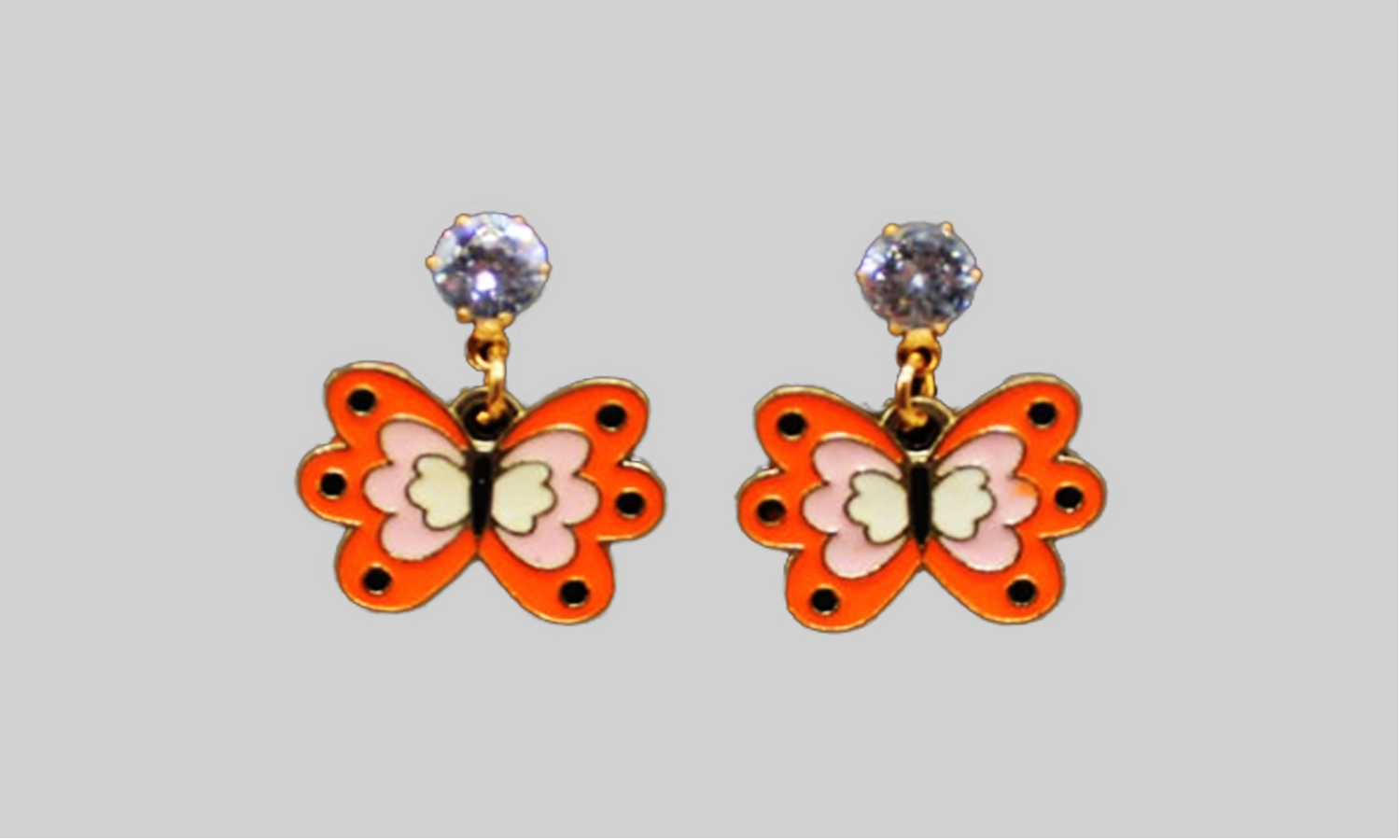 Butterfly Charm Stud Earrings For Women And Girls in Orange Color