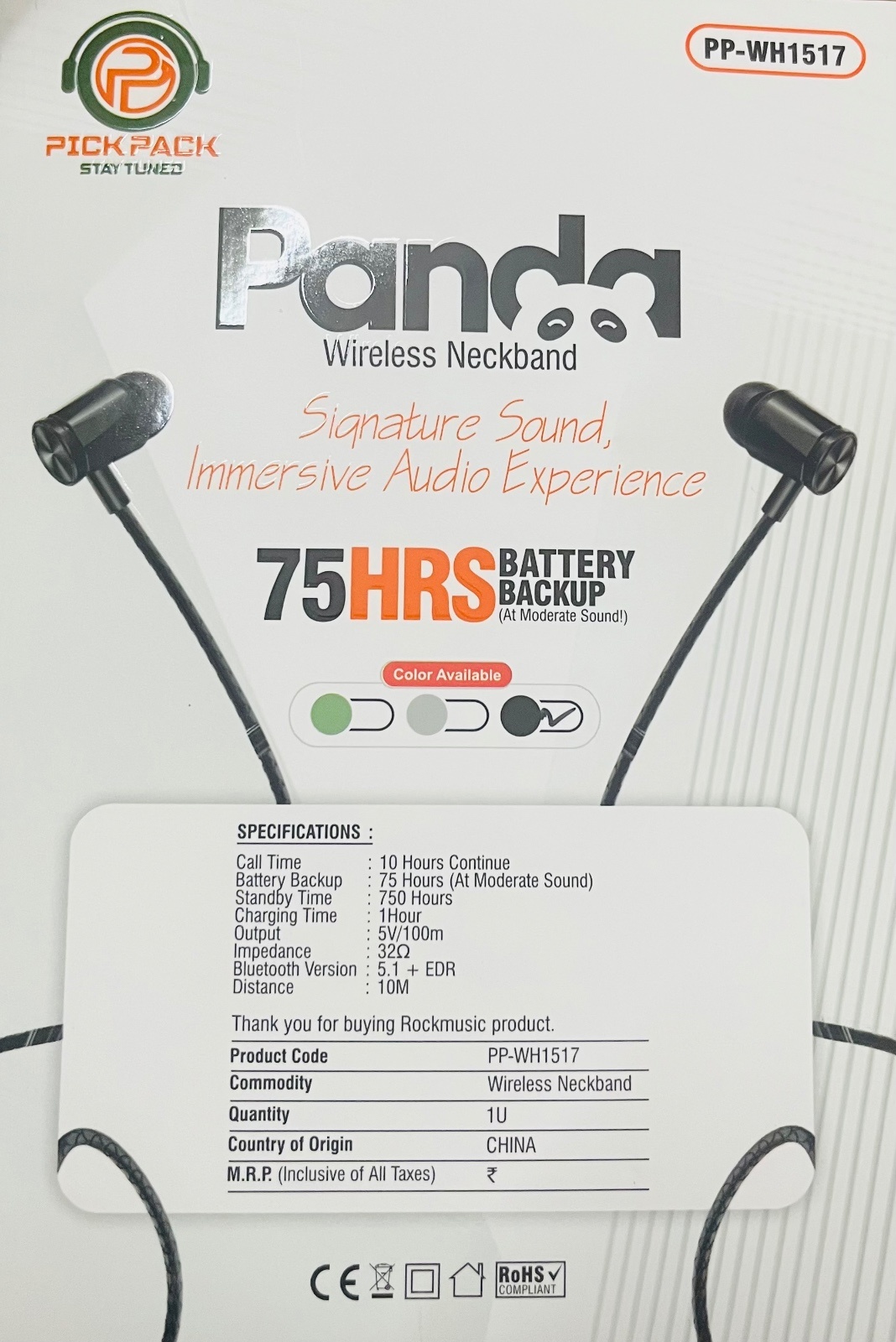 Panda Bluetooth Neckband with High Quality Sound, Long Battery Backup