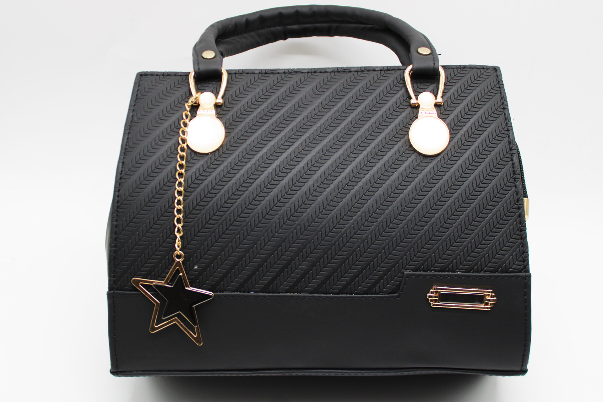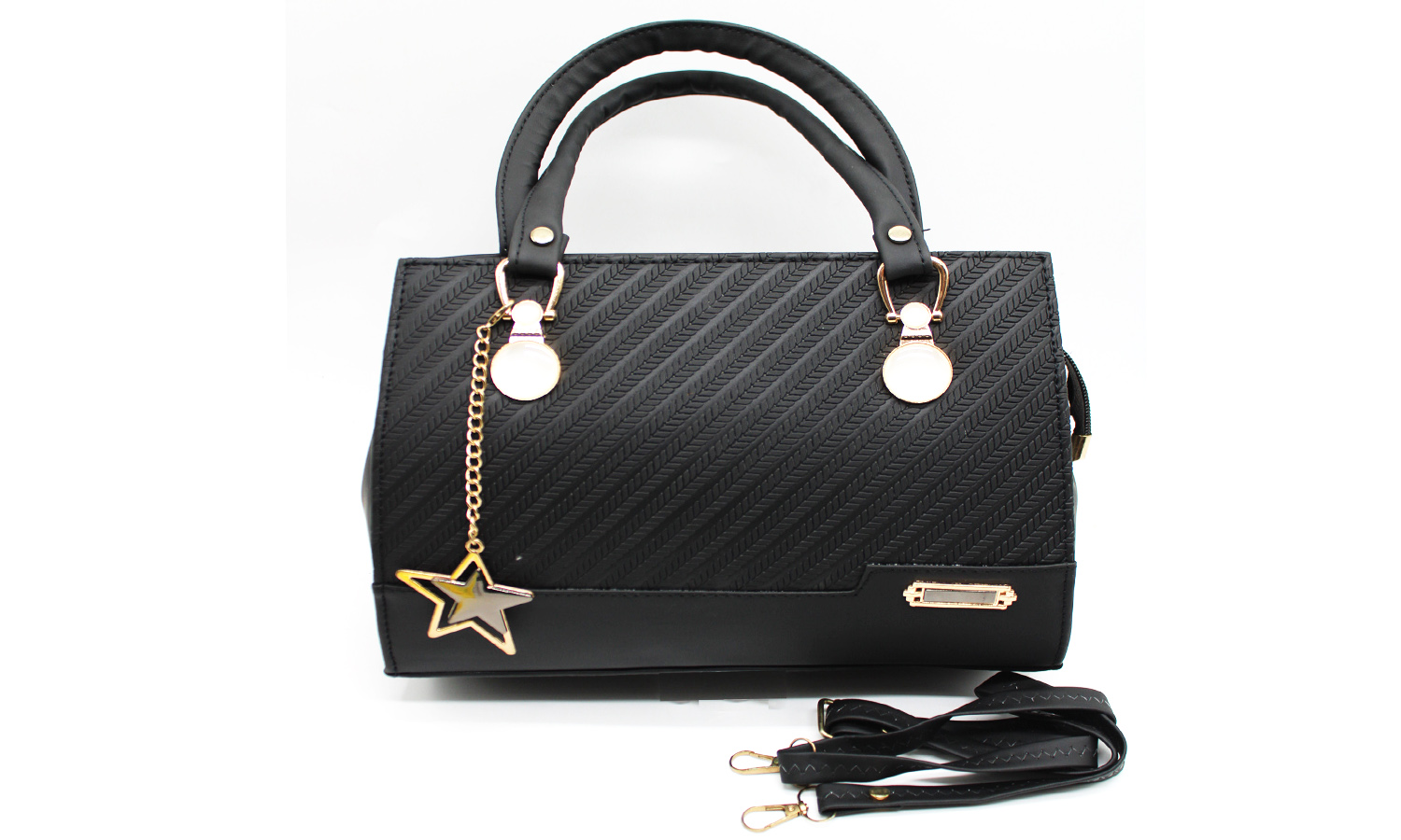 A decorative gold chain with a star-shaped charm hangs from one handle, giving it a playful yet classy vibe. The bag also includes a small gold-tone nameplate detail, enhancing its premium appeal. Perfect for both casual outings and formal occasions, it blends style with versatilit
