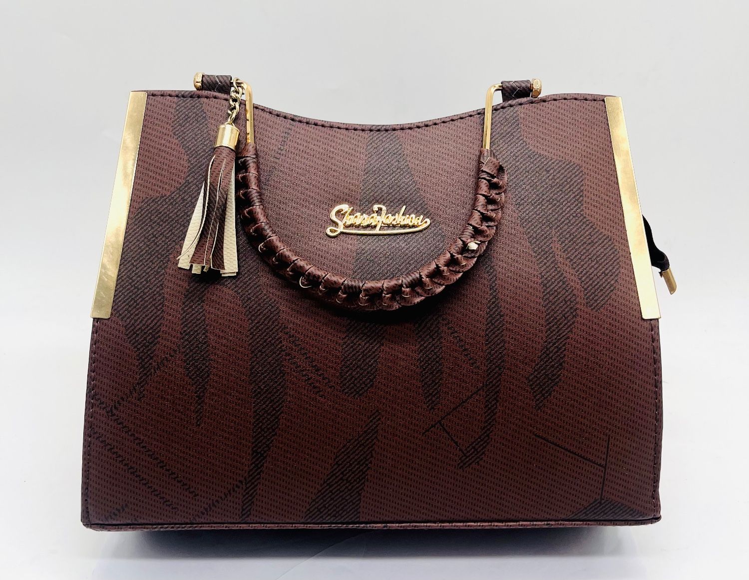 Step out in style with this Brown Printed Textured Handbag, designed for modern women who love fashion with functionality.