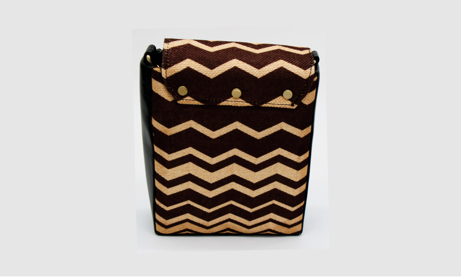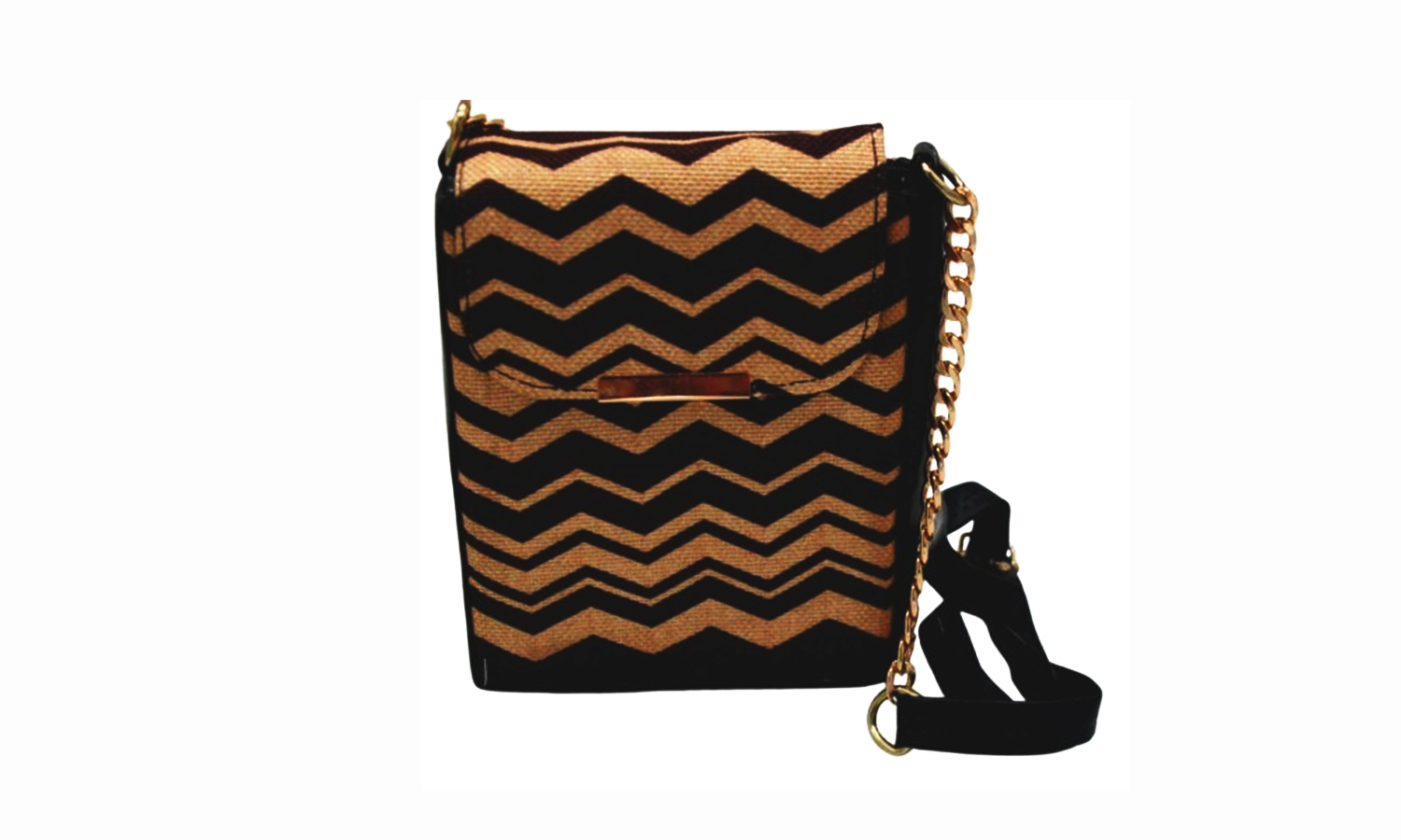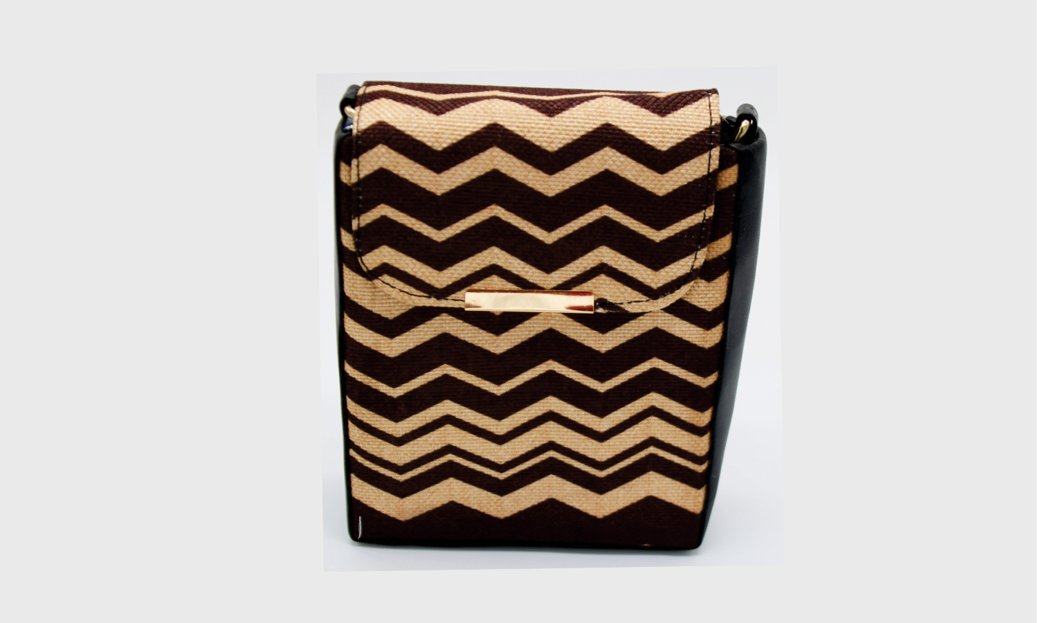 Stylish brown sling bag with a bold and trendy zigzag pattern.