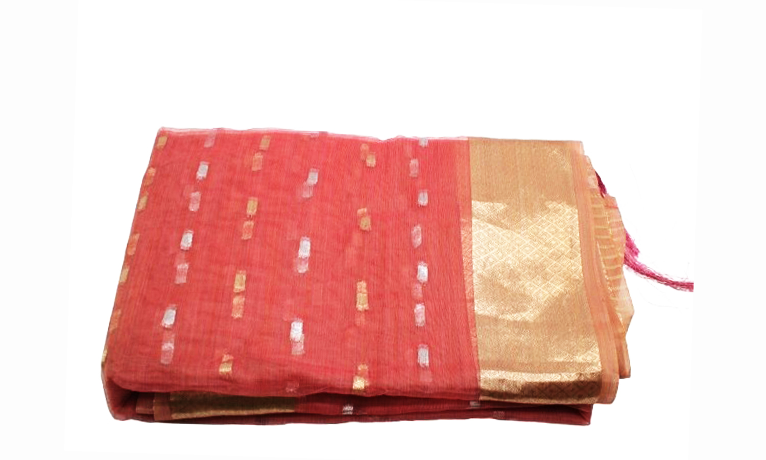 Radiant Orange Silk Saree with Golden Zari Work & Green Contrast Border