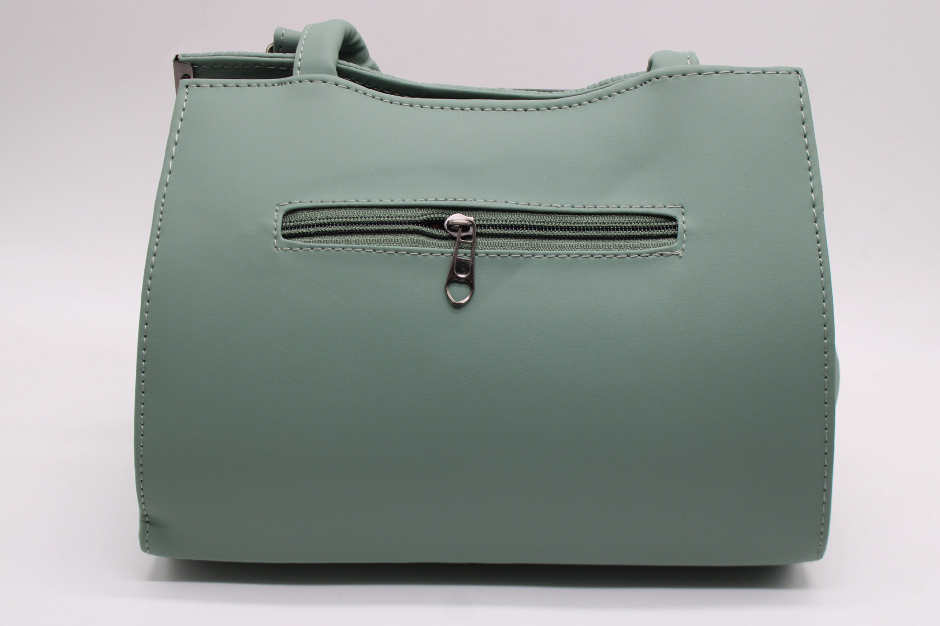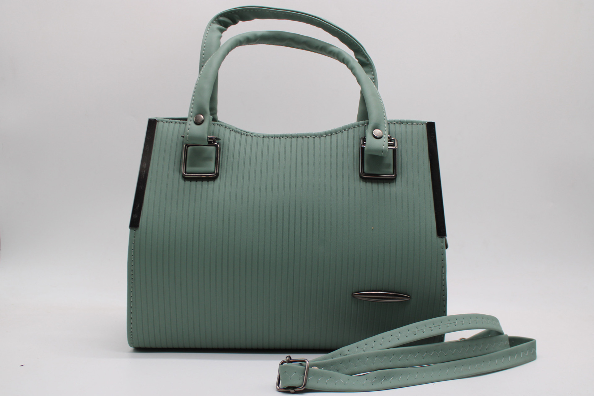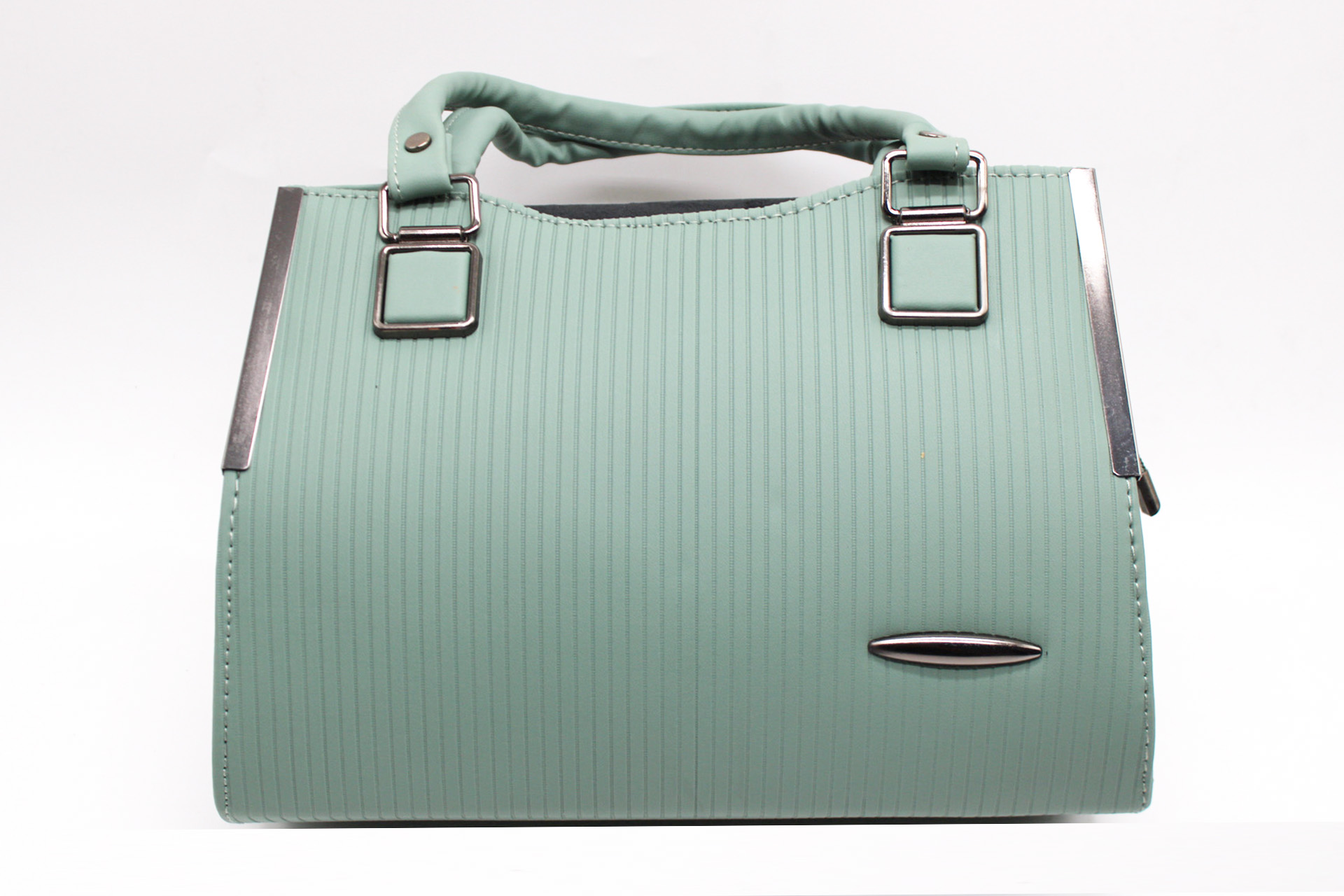 Women’s handbag in a solid pastel green color with a vertically ribbed texture on the body.